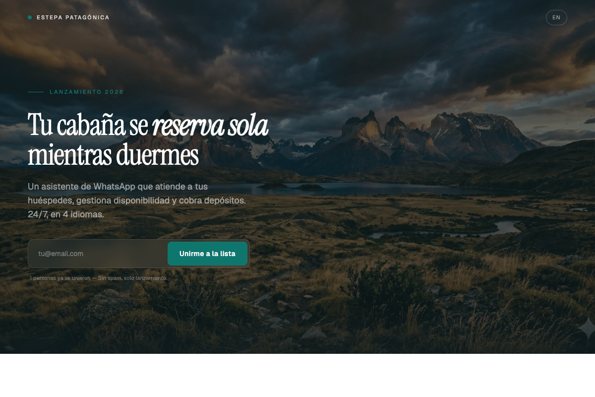 Bot agéntico de WhatsApp para reservas de cabañas en Puerto Natales, Patagonia. Sync de calendarios, pagos y gestión completa de reservas.